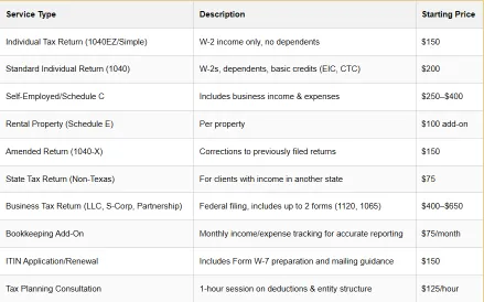 We believe in transparent pricing with no hidden fees. Below is our complete pricing for Texas residents. For a detailed quote, please schedule a free consultation.